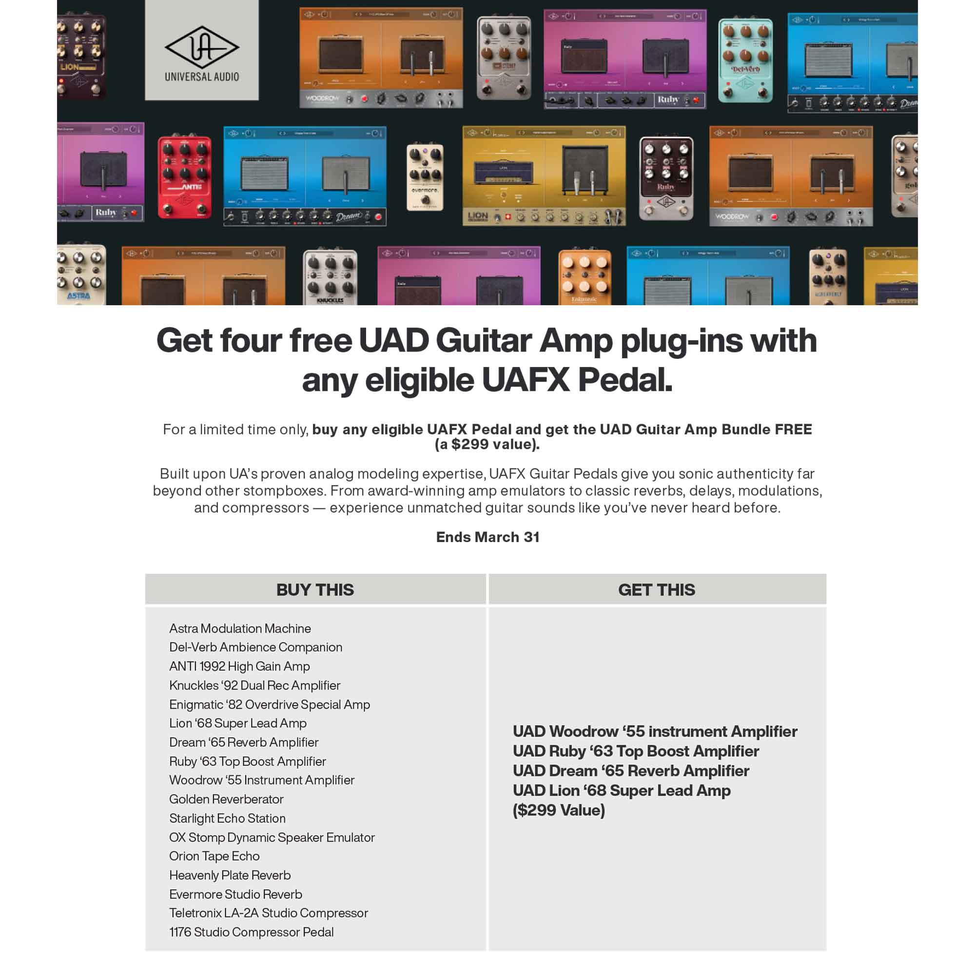 For a limited time only, buy any eligible UAFX Pedal and get the UAD Guitar Amp Bundle FREE