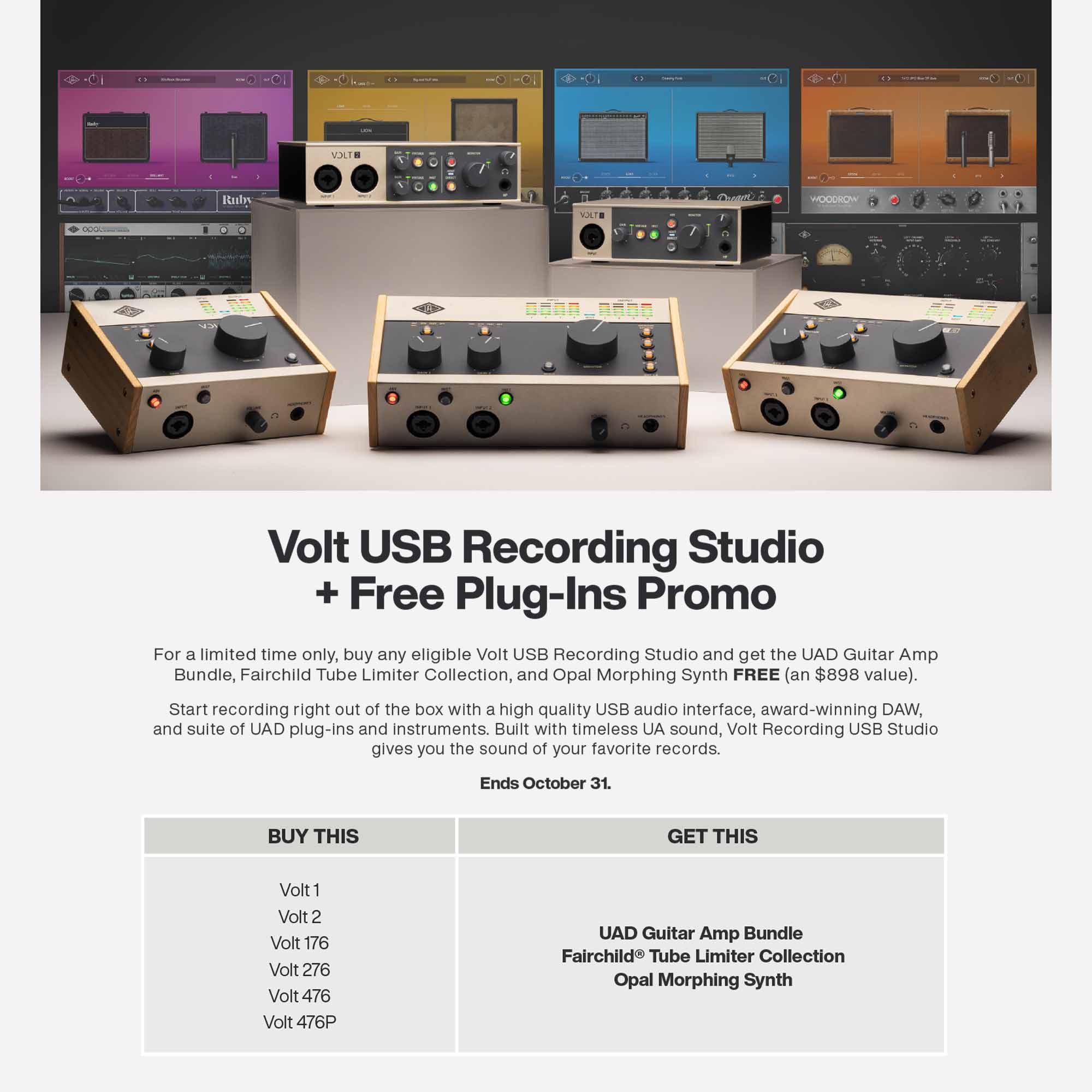 For a limited time only, buy any eligible Volt USB Recording Studio and get the UAD Guitar Amp