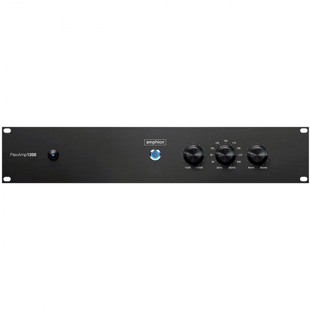 The Amphion FlexAmp1200 is a 700-watt-per-channel stereo power amplifier designed to be the driving force behind the Amphion FlexBase25 Bass Extension System. It provides clean power and features a variable crossover frequency, allowing users to seamlessly integrate the FlexBase25 with various Amphion monitors and third-party speakers to create a full-range, three-way monitoring system.