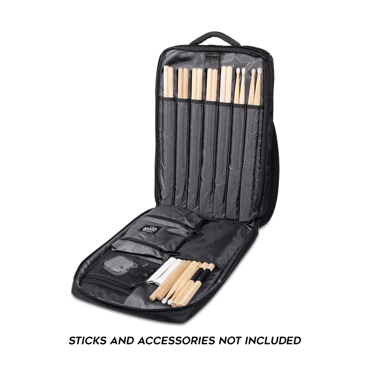 The QUIVR Tour tech/stick bag lets you carry your drum sticks, tools, in-ear monitors, small accessories, AND laptop all in one compact, organized bag! Check out these sweet specs: