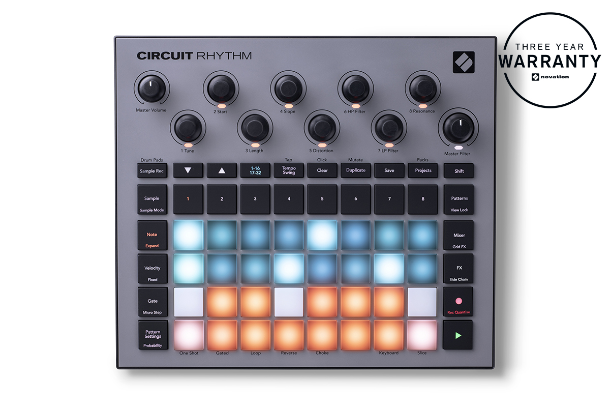 Circuit Rhythm is the powerful and versatile standalone sampler for the modern beatmaker. Samples can be recorded directly to the hardware, then sliced sculpted, reversed, looped, resampled, and played chromatically — all in the box. Grid FX invigorate your live performances, with lo-fi tape, stutter, beat repeat effects, and more.
