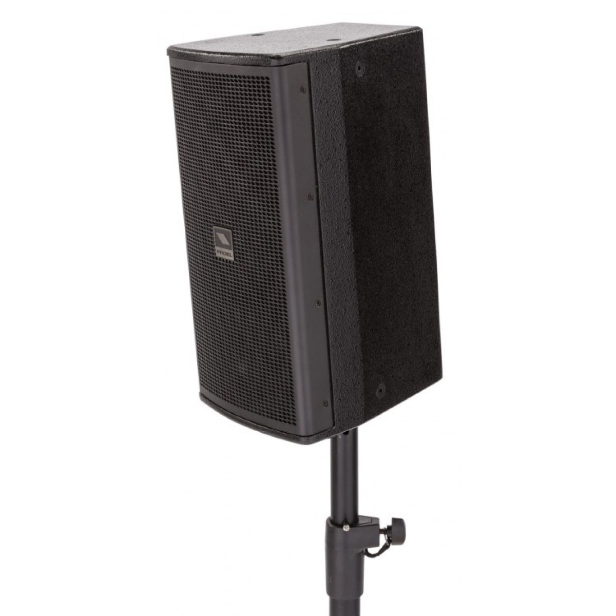For the construction of the cabinets we have used plywood, a very lightweight and durable material that makes moving and installing these speakers very quick and easy. Strong, anti-scratch paint and steel grilles with an internal foam layer provide proper protection for years of service. The dual-angle pole holder featured in 8”, 10”, 12” and 15” models offers the possibility to obtain a more uniform coverage of the audience.