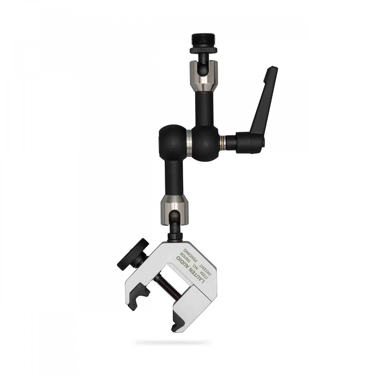 Imagine if you could combine all the pros of a top-quality mic stand and a rim-mountable drum microphone system. Now, picture removing all the cons of both. Wouldn’t that be something special? Well, that special something is here: the Lauten Audio Rim Mount drum mic clip. Say goodbye to positional limitations, gradual mount sagginess, buzzes, rattles, or general studio corner clutter. Just set the Rim Mount drum mic clip in position on your drums, and then focus on the music. Featuring a shock-absorbent design and a fully articulating arm system, the Rim Mount drum mic clip from Lauten Audio lets you optimally place near any mic on nearly any drum